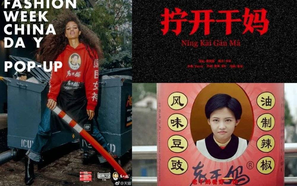 当时,老干妈和Opening Ceremony合作的卫衣登上纽约时装周,这件印有老干妈Logo和“国民女神”字样的卫衣被称为“土味时尚”代表作。