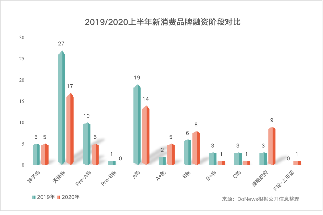 我们试图寻找这些答案。「DoNews」对2020年上半年新消费品牌投融资事件进行了梳理,相较于2019上半年80起融资事件,2020年上半年共披露66起,有近18%降幅。