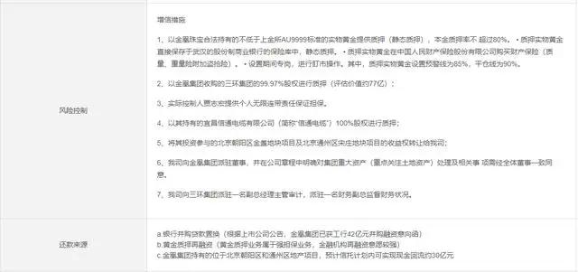 其中质押实物黄金设置预警线为85%,平仓线为90%;实际控制人贾志宏提供个人无限连带责任保证担保;以宜昌信通电缆有限公司(下称"信通电缆")100%股权做质押;还将北京朝阳和通州两个区的地块项目的收益权转让给东莞信托。
