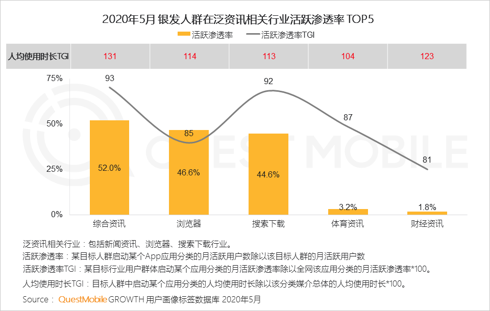 4.1 银发人群对于资讯的需求突出,花在各类泛资讯应用的时间更多,喜欢通过浏览器和搜索下载类应用主动搜索各种信息