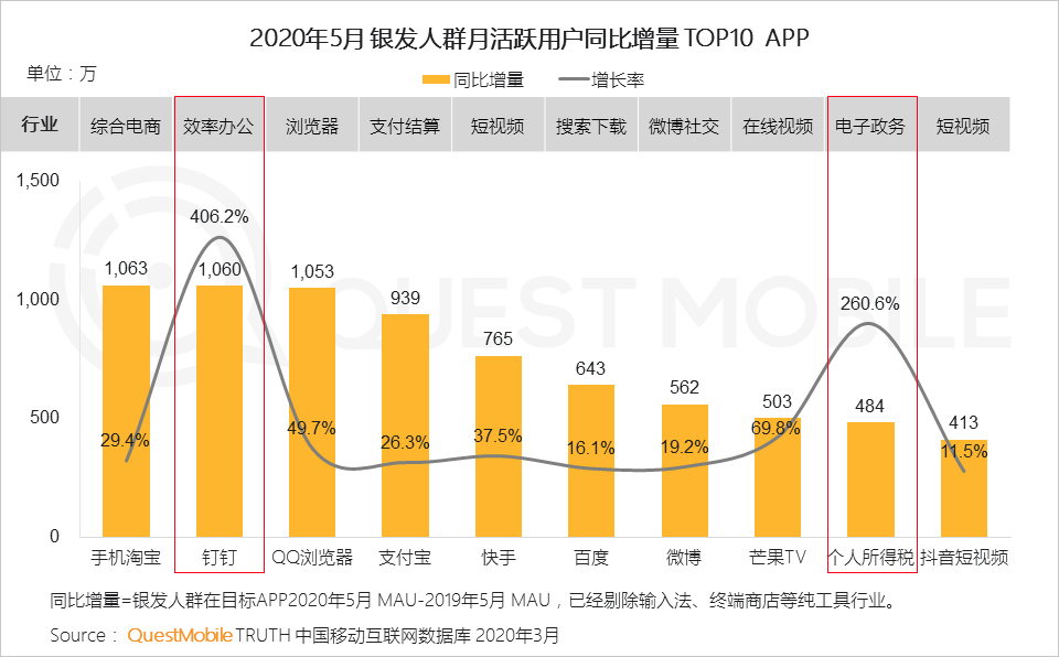1.5 越来越多APP成为银发人群必不可少的帮手,办公、政务类APP的银发人群增加最为突出