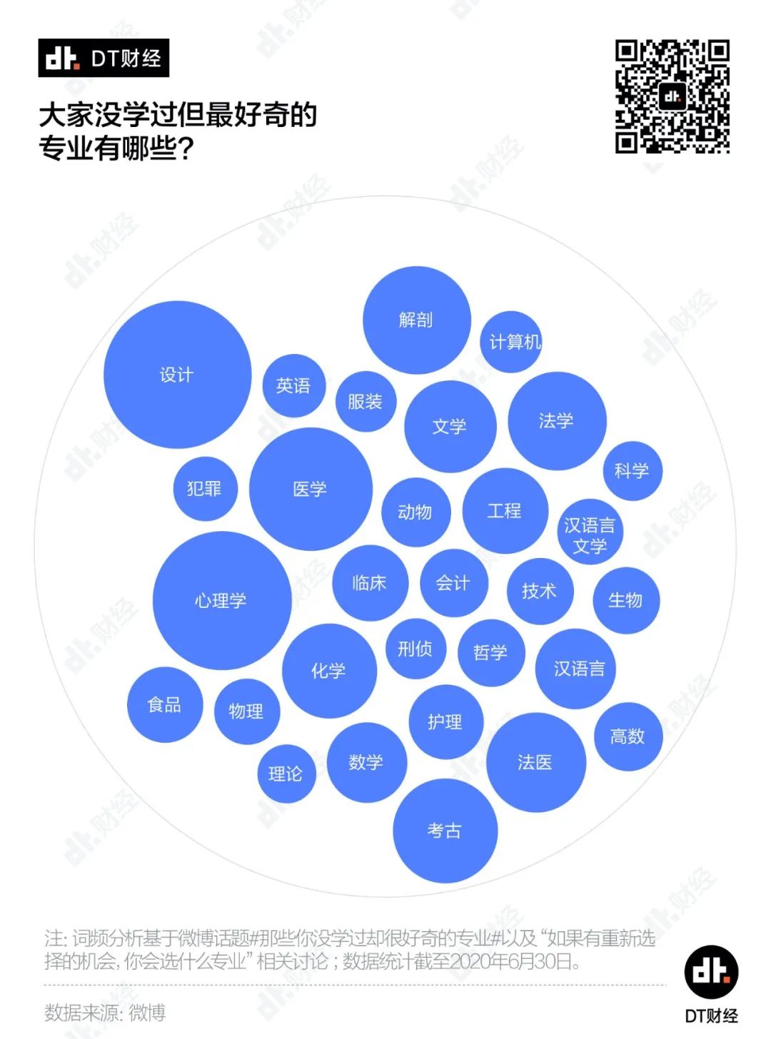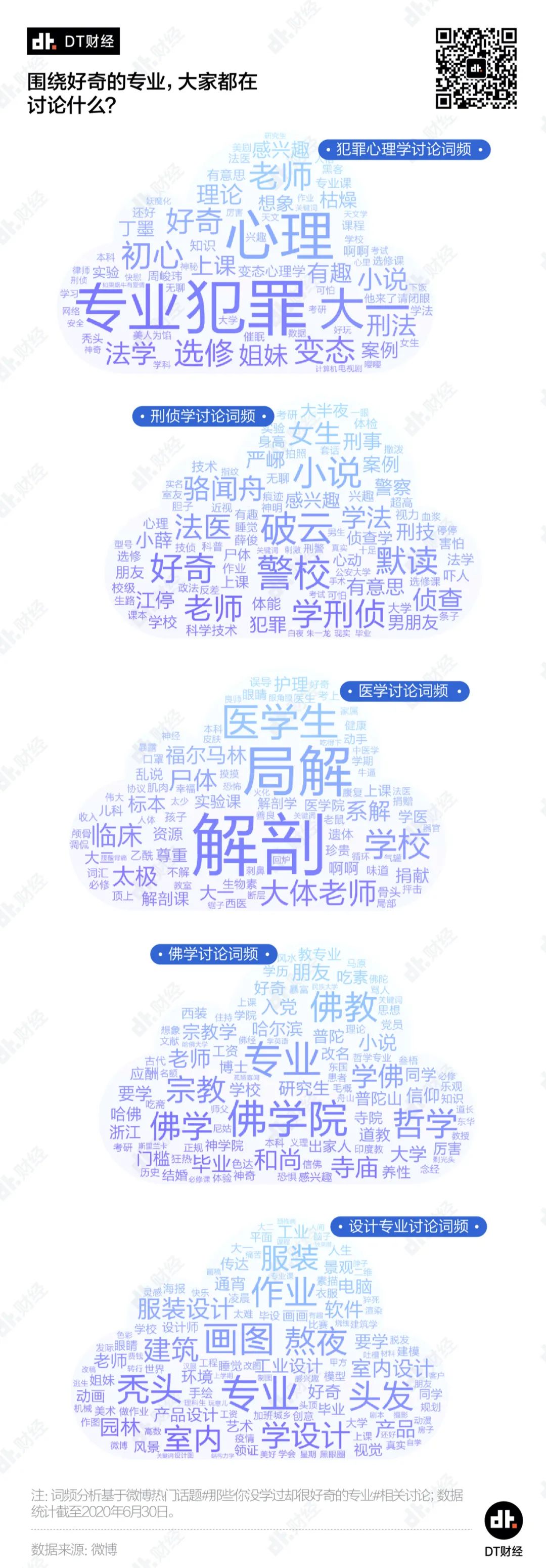 从相关讨论来看,设计、心理学、医学、解剖和考古成为最让人好奇以及最想选择的梦想专业,法医、法学、化学、文学和工程,也跻身榜单前10。