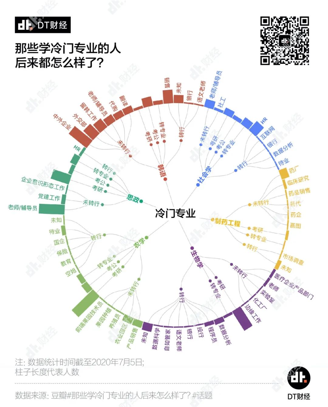 你看,冷门专业学生本身就承受了不符合年纪的重担,可能一边搞着科研,一边还要回答一些很无厘头的提问。但常常思考职场路径的DT君,也在思考一个更实际的问题——冷门专业学生最终去向了何方。