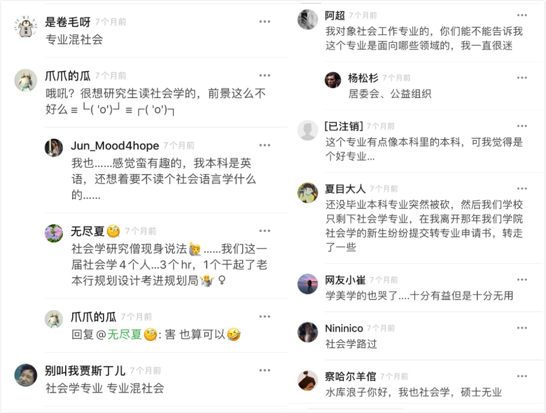 那些吐槽着“社会学专业,专业混社会”的同学们,在进入社会之前已经有相当一部分直接选择了转专业。两个专业下的案例情况也较为类似,专业相关工作多是老师或辅导员,转行后都更偏向于做HR。