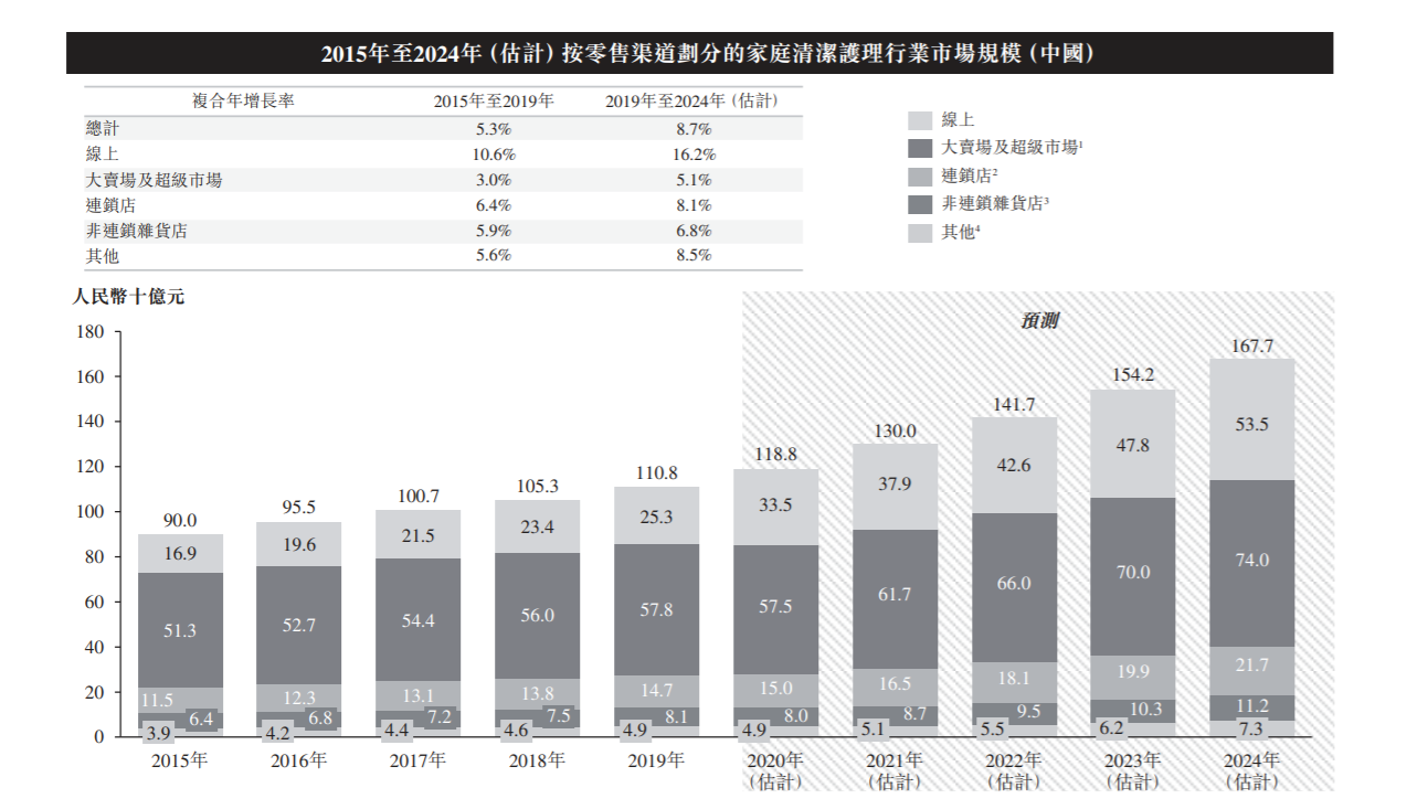 (电商渠道在洗衣液市场的渗透率逐渐提升;图片来源:蓝月亮招股书)