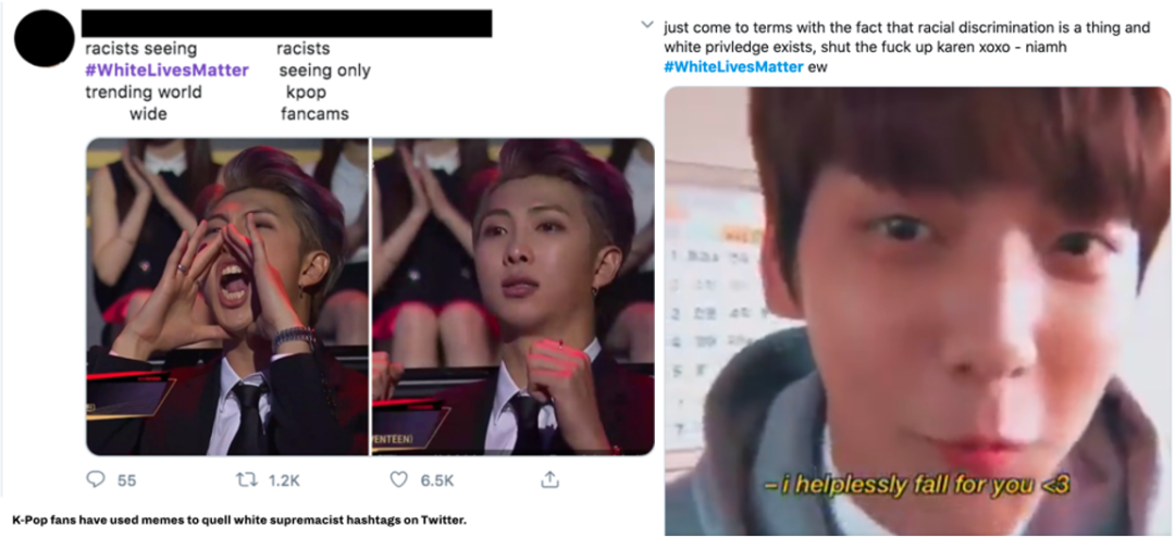而这些种族主义者发现,韩流粉丝已经率先用自己爱豆的舞台、翻拍视频、采访片段等内容淹没了这些种族主义主题的标签。