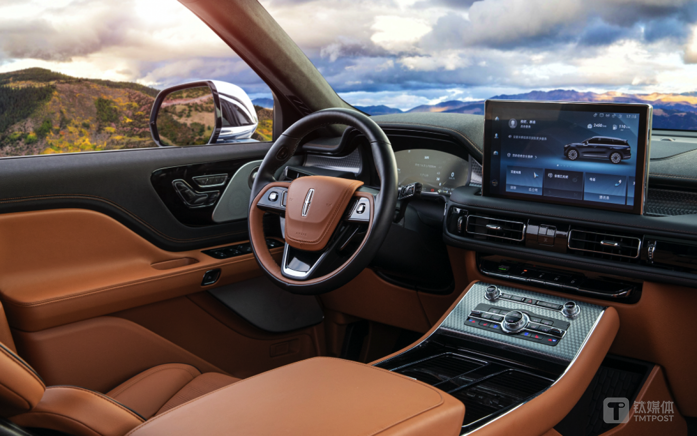 车内中控上,全新林肯飞行家Aviator还搭载了中国专属的12.8寸超大高清触控屏,支持1920x1080分辨率的全高清画质。其可支持中国专属的全新SYNC+智行互联系统,在智能导航、语音交互体验、娱乐服务内容以及智能云端互联,这四大智能属性上拥有非常不错的表现。