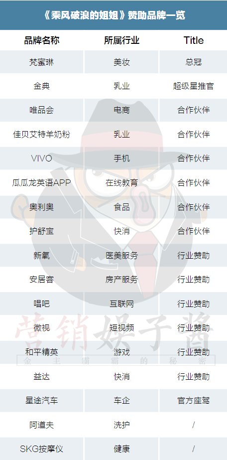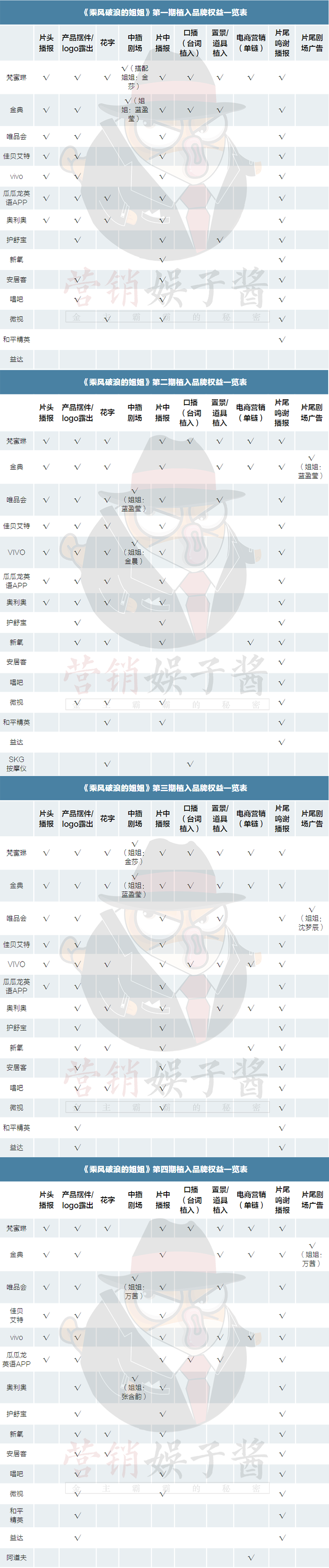《乘风破浪的姐姐》第一到第四期植入品牌权益一览表