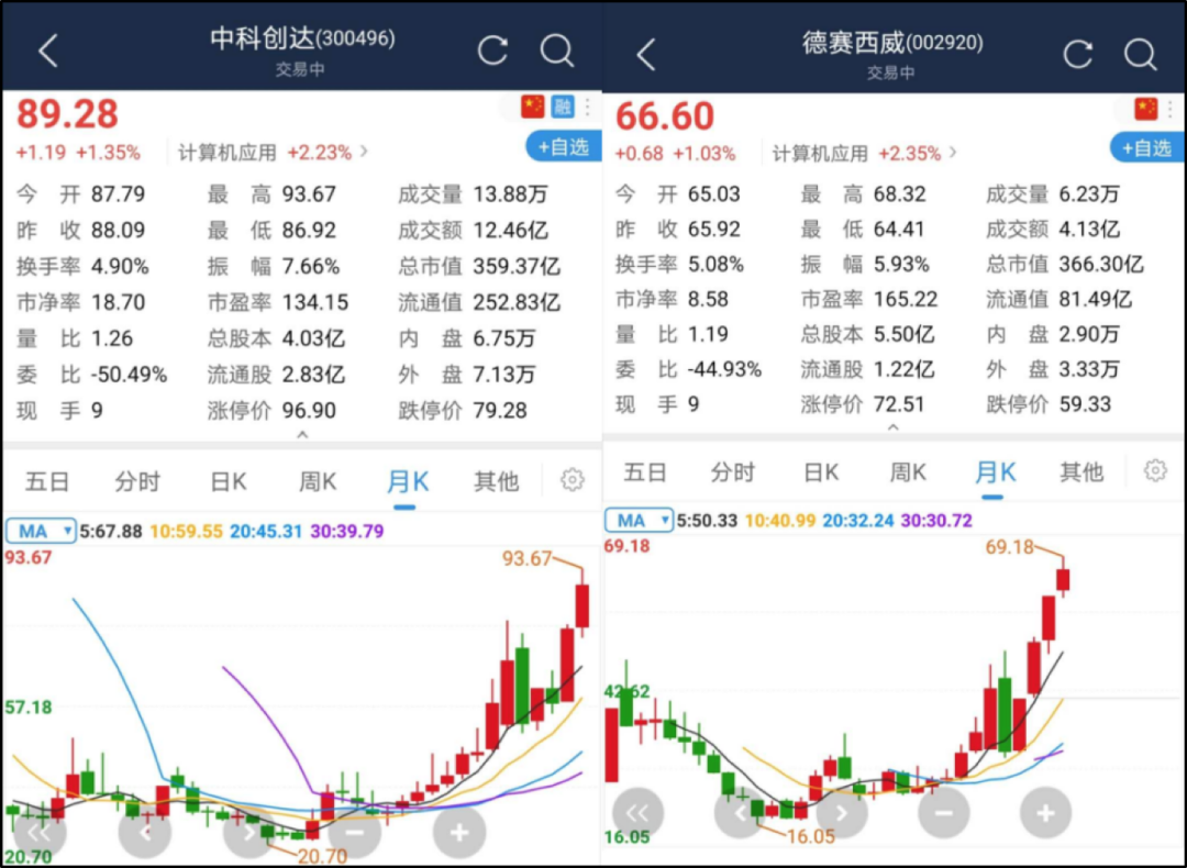 2019年7月至今,中科创达的股价从29元一度飙升到超93元,涨幅223%;同期,德赛西威的股价涨幅也超过200%。