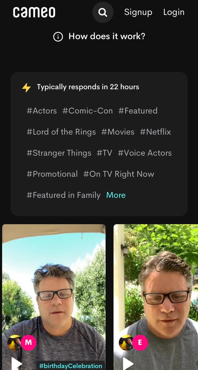 Thomas没有想过会有这么多人愿意付60美元,只是为了得到一个自己拍的视频,哪怕只是说几句话。而这正是Cameo为这些非一线明星带来的价值。