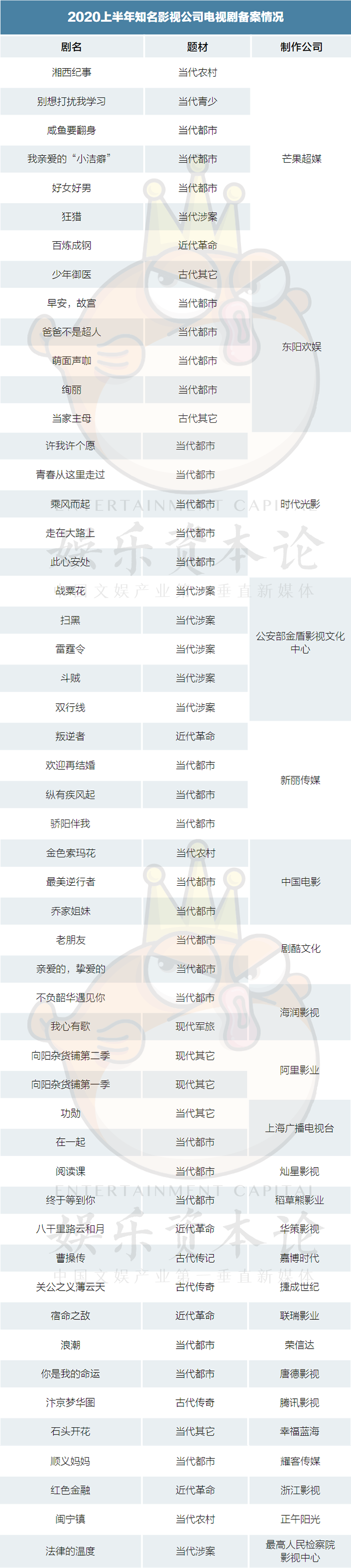 与行业整体趋势相应,头部影视公司的电视剧备案表现也并不亮眼, 远低于去年同期的备案数。在大环境不景气的情况下,大部分上市公司和未上市知名影视公司选择了暂缓影视作品的开发。