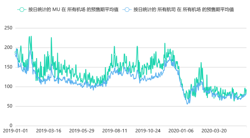 ▲ 李及李公司基于合作伙伴提供的抽样调查数据对各航空公司的预售期的估计