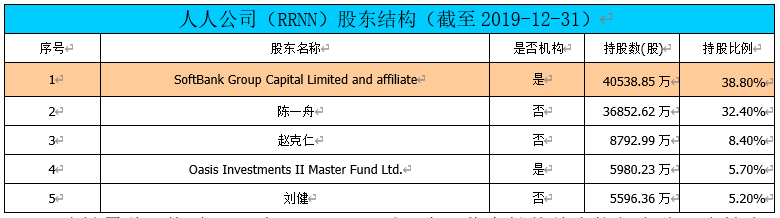 从人人公司了解到,截至2019年12月31日,其第一大股东还是日本软银集团,持有4.05亿股,持股比例38.80%,享有42.6%的投票权。