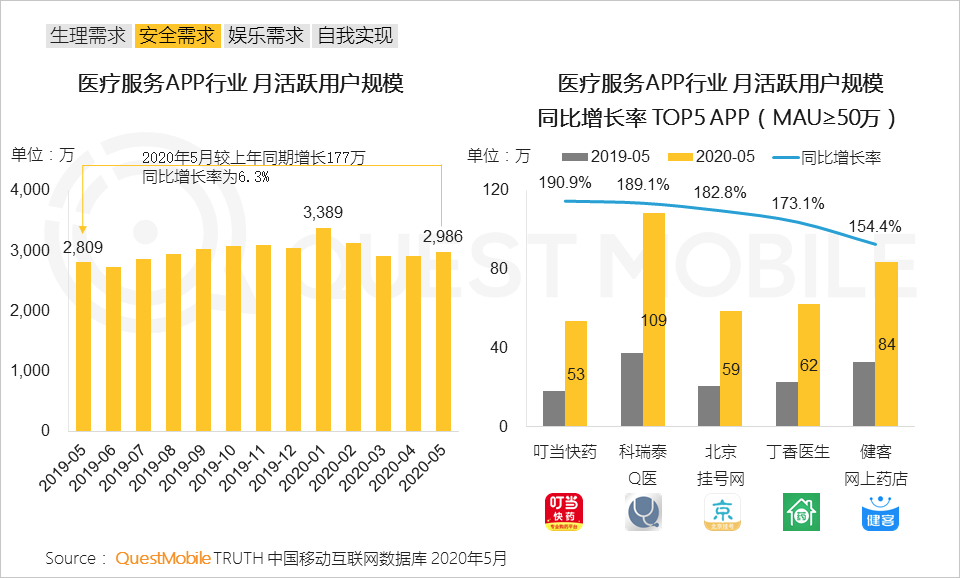 3、医疗、健康等业务通过互联网在提升效率的同时规避不必要的线下接触,满足用户对安全的需求