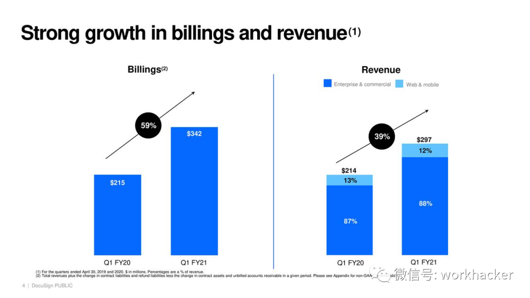 尽管在营收层面的表现还不错,但作为一家高速成长的企业,DocuSign同样面临亏损的问题。一季度DocuSign的净亏损为4780万美元,即每股亏损26美分,超过上年同期的亏损4570万美元,即每股亏损27美分。