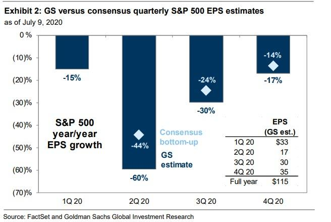 因受到新冠肺炎疫情影响,此前超过180家标普500指数成分股公司此前取消了业绩指引,这也让分析师们对不少公司的盈利预测的分歧则创下了金融危机以来的新纪录。而在最新研报中,高盛首席股票策略师David Kostin表示,二季度美股公司盈利将暴跌六成。