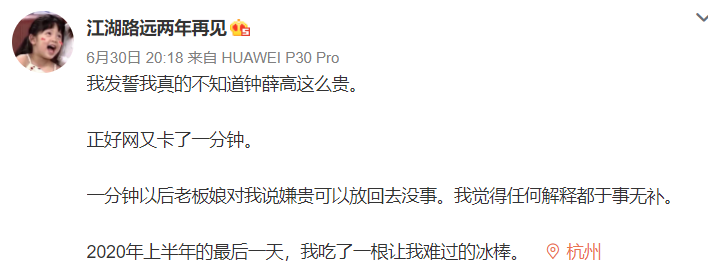 更加侧重电商等线上渠道的钟薛高,一次性10片的价格让很多消费者还是望而却步的,以致于其官微在微博上向消费者建议,可以到便利店单片购买。