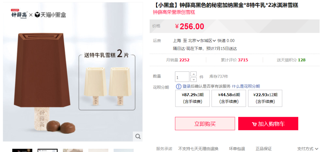 钟薛高更是在小红书、抖音、明星等全方位地投放广告,在种草社区给消费者种草。钟薛高的营销策略,堪比赫畅的奔驰送煎饼,其上线了一块厄瓜多尔粉钻产品,售价高达66元一支。