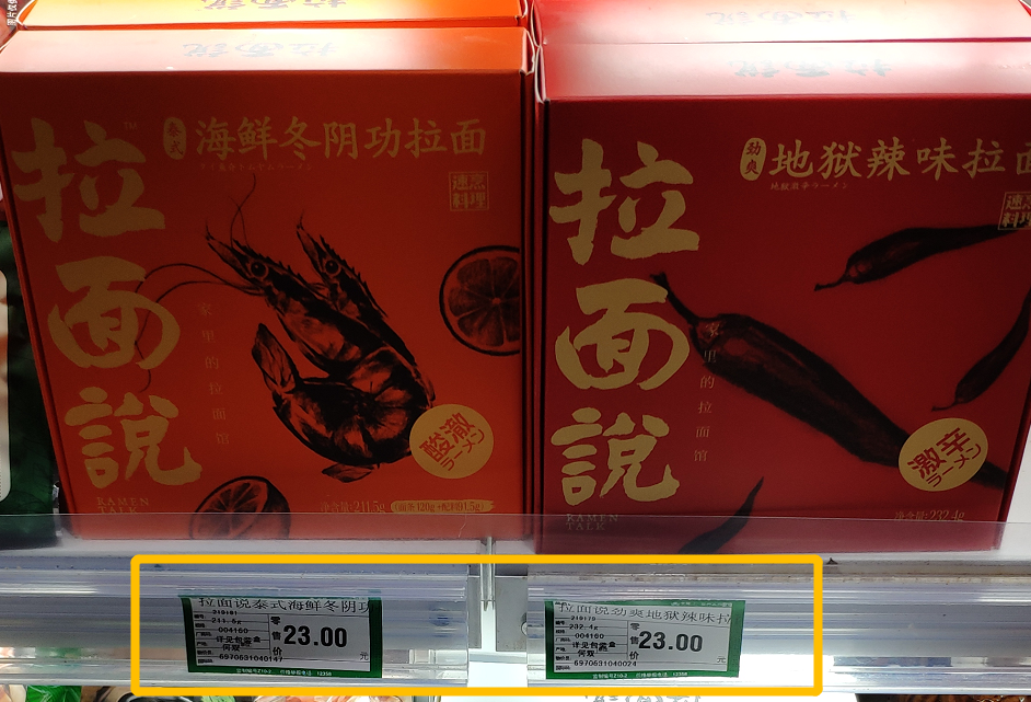 一份拉面说的价格,普通包装的要17块钱,纸盒包装的要达到23块钱。这个价钱,和一线城市到店的一份拉面价格差不多。