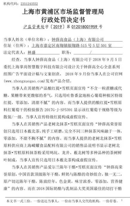 但最打脸的是,2019年上海黄埔区的一个处罚让钟薛高现出原形。钟薛高在被罗永浩直播带货后,被扒曾经因为虚假宣传受到过上海市黄浦区行政处罚,其宣传的原材料均非所宣传的等级。
