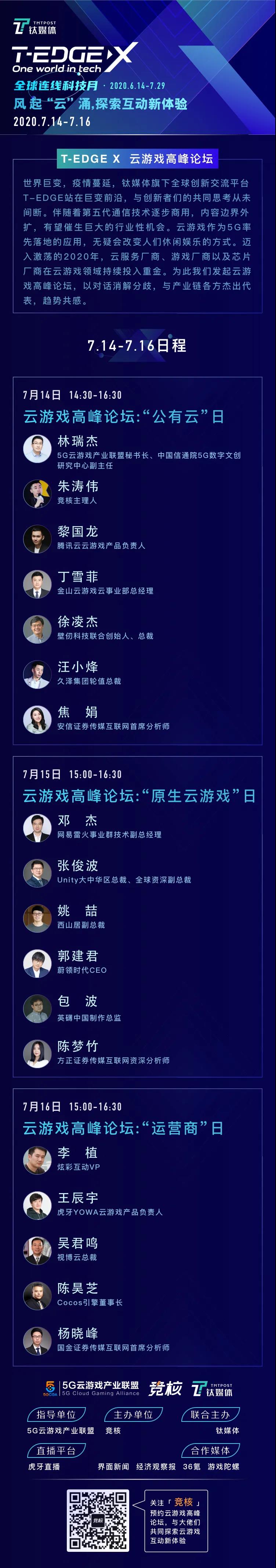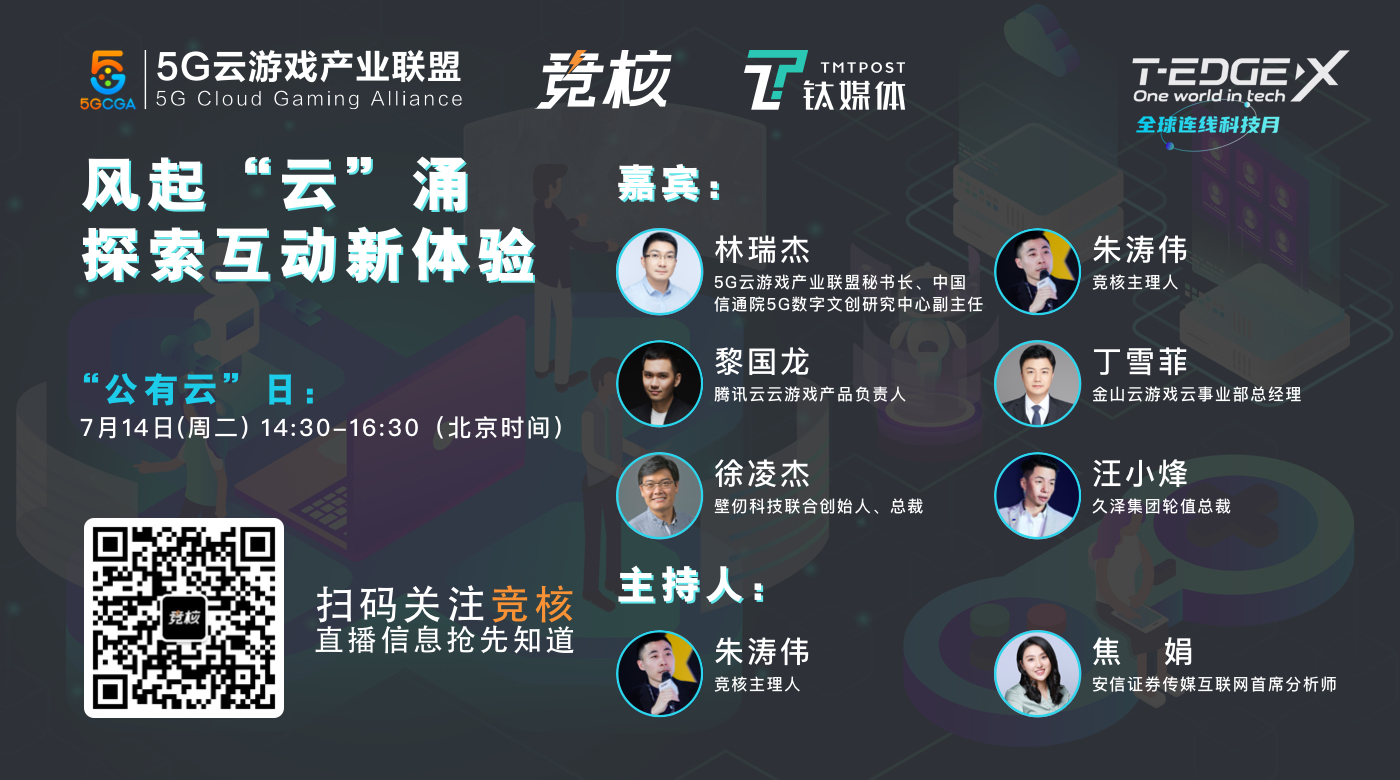 本次活动是在工信部5G云游戏产业联盟指导下,竞核主办、钛媒体联合主办、虎牙直播独家直播、界面新闻、经济观察报、36氪、游戏陀螺支持的盛会。