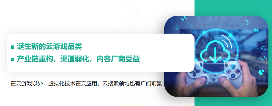 眼下影响云游戏发展的核心变量:技术(GPU虚拟化、音视频编解码、5G、边缘计算几乎不变);引擎开发工具(尚处于起步阶段);内容版权风险(上升)。