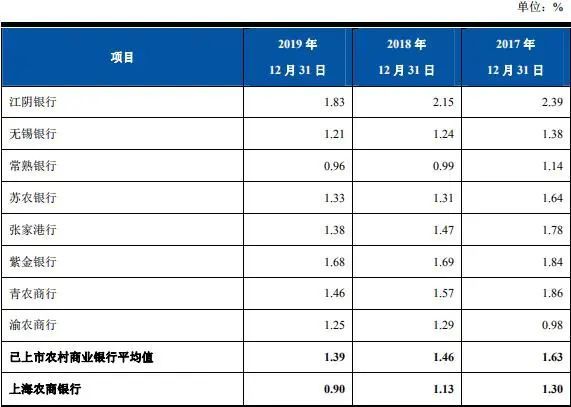 与已上市农村商业银行相比,上海农商行银行的不良率处于较低水平。