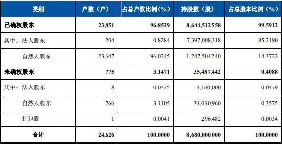 截至2020年3月31日,上海农商行法人股东共计212户,合计持有股份74.01亿股,占该行发行前总股本的85.27%;自然人股东共计24413名,合计持有该行股份12.78亿股,占发行前总股本的14.73%;打包股持股数量为29.64万股,占发行前总股本的0.0034%,共计5740户。