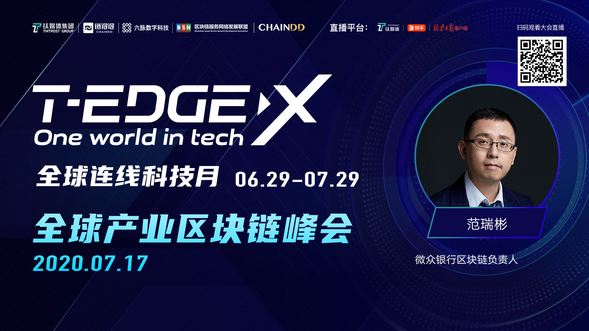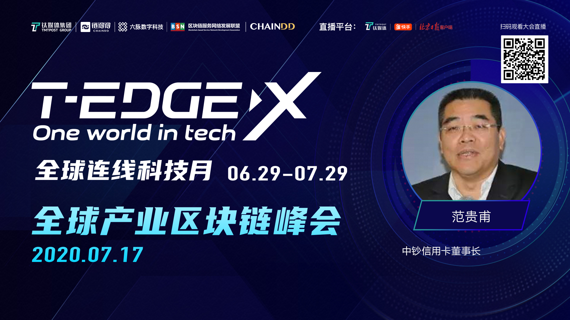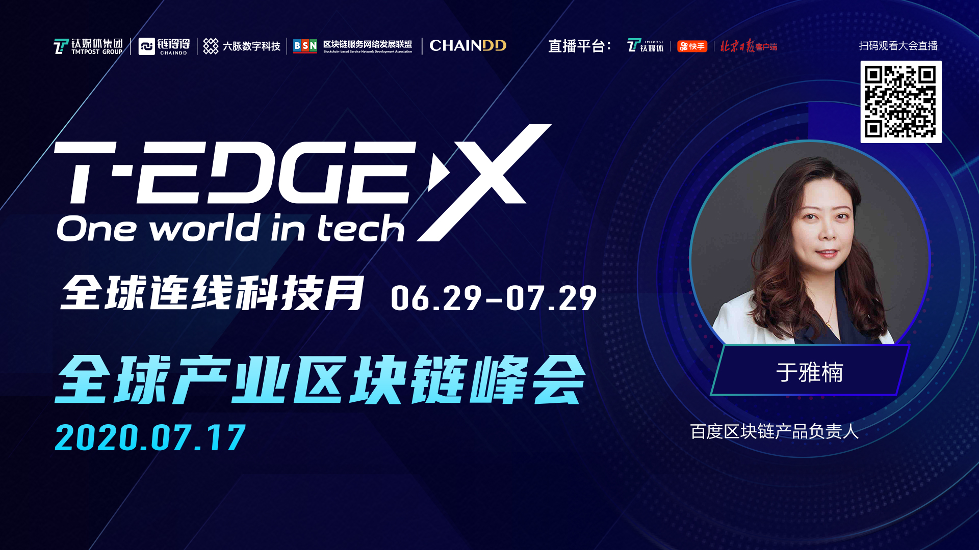 7月17日,T-EDGE X 全球科技月将进入“产业区块链时间”。这一天,钛媒体、链得得联合六脉数字科技、区块链服务网络BSN联盟共同发起“T-EDGE X 全球产业区块链峰会”,与中国移动、中国银联、中钞信用卡集团、蚂蚁集团、腾讯云、百度、恒生电子、京东数科、微众银行、中国信息通信研究院、网易区块链等知名产业与科技巨头,共论产业区块链的落地范式和行业前景。锁定链得得App、钛媒体App“前沿”直播间。7月17日周五上午9:15至12:00,下午14:00至17:40准时同步直播。