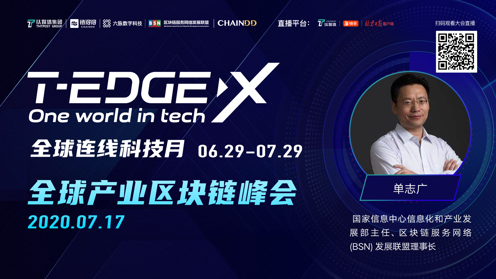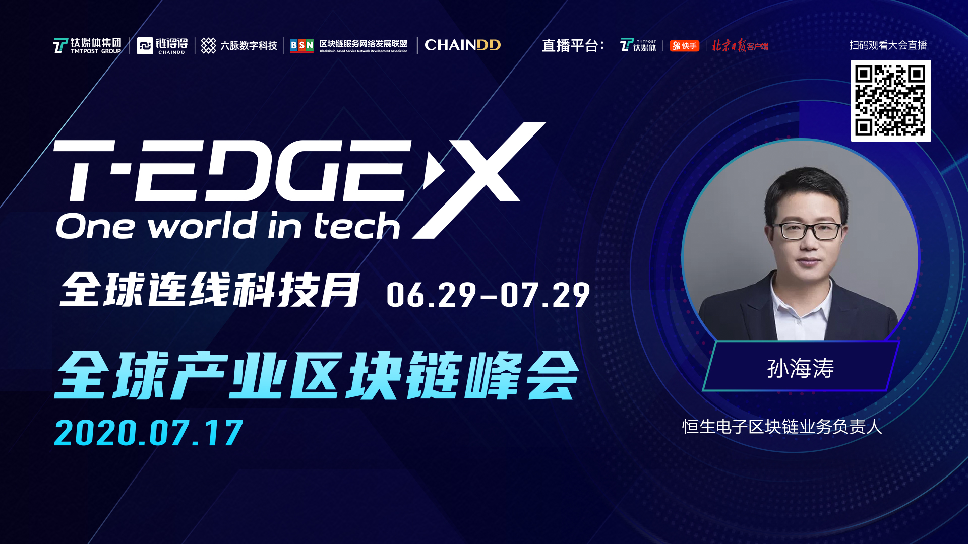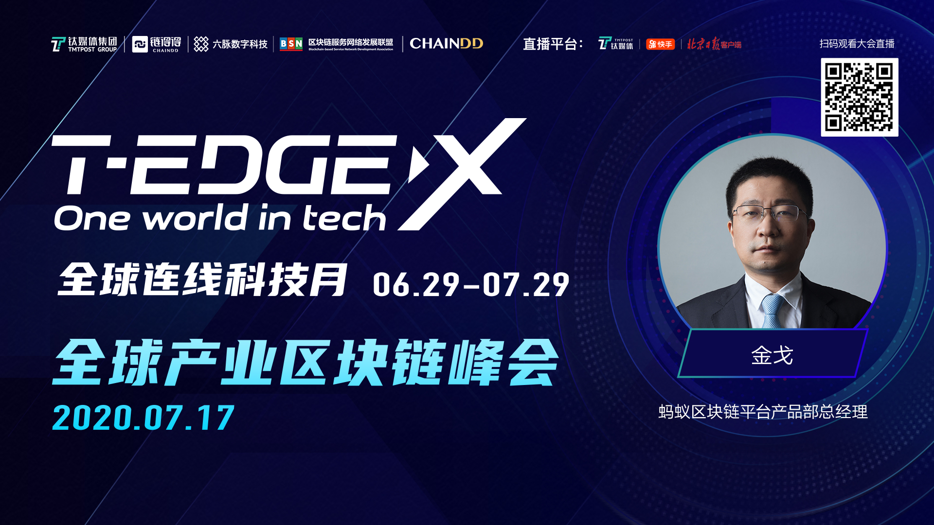 6月29日开始至7月29日,钛媒体、链得得联合中外各大合作伙伴一起,正式发起了一场长达一个月的ONE WORLD IN TECH全球思想狂欢,终将“T-EDGE X 全球科技月”落地成型。30天时间,20余家海内外直播平台转播,超500万观众同步在线关注,多场系列主题峰会轮番登场,五大前沿论坛昼夜对话。