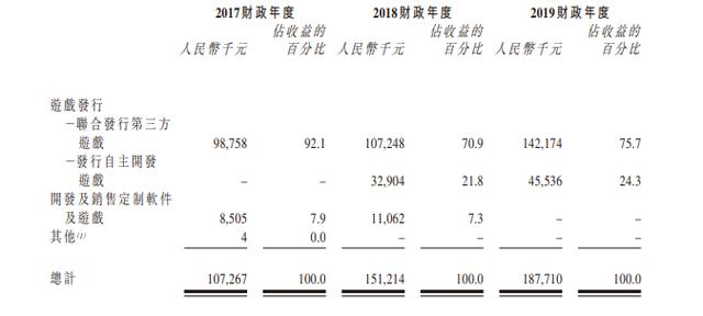 借着手游行业迅速发展的东风,新娱科控股目前的收益年复合增长涨势较好。新娱科控股2017-2019财年的收益复合年增长率为32.3%,表现强劲。但从新娱科控股的招股书来看,第三方游戏一直是其营收的重要来源。2017-2019年,占总营收比分别为92.1%、70.9%和75.7%。第三方游戏发行业务主要是作为联合发行商,发行服务包括营销、推广、分销、协调及其他用户相关服务,在合作中往往处于弱势地位话语权较弱。