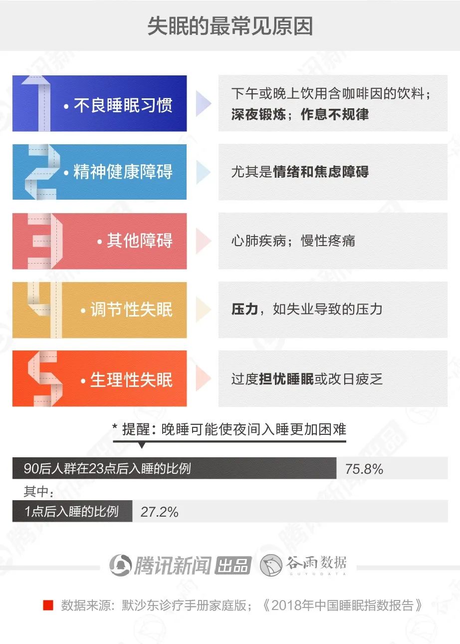 根据《2018年中国睡眠指数报告》的调研,90后群体中有75.8%的人习惯在23点后入睡,其中有27.2%的人入睡时间在凌晨1点后。