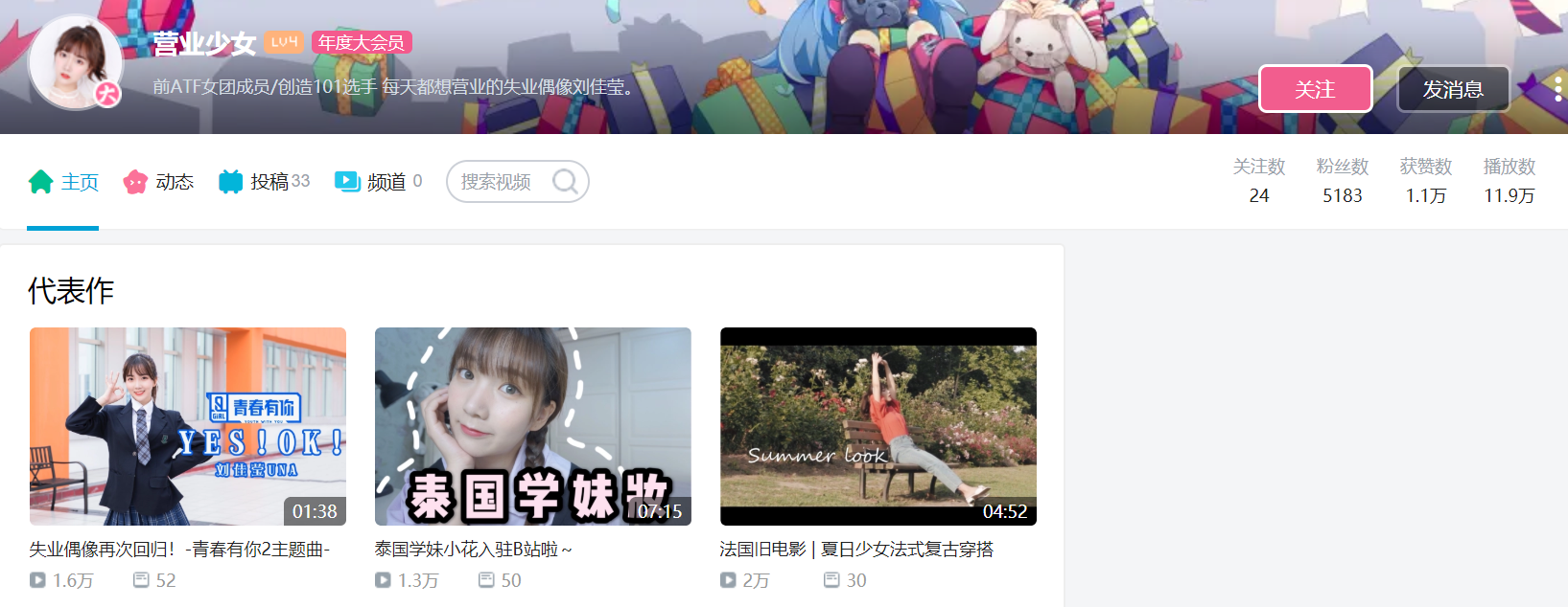 《创造101》中的练习生林珈安已经结婚生子,创办了一个自己的饰品品牌;刘佳莹开了B站账号,跳女团舞,拍美妆、穿搭视频,做食物测评,她在简介里叫自己“每天都想营业的失业偶像”,所有视频的播放量在11万左右。