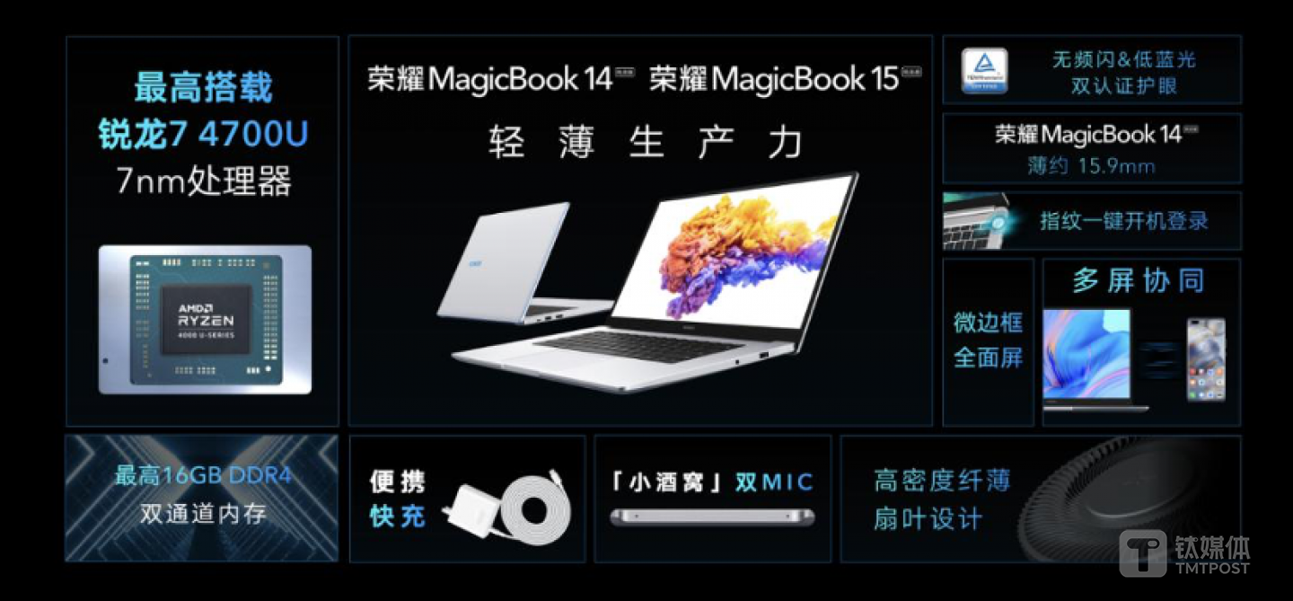 钛媒体7月16日消息,荣耀发布了锐龙版笔记本电脑,MagicBook 14/15系列锐龙版、以及荣耀MagicBook Pro锐龙版。发布会最后,荣耀官方还宣布开启荣耀智慧屏X1 50英寸版的预售。