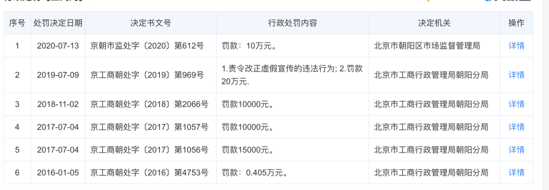 事实上,这已经不是嗨学网第一次被“公开处刑”。天眼查显示,从2016年开始,嗨学网曾先后6次被工商部门处罚,原因包括经营者利用广告或者其他方法,对商品作引人误解的虚假宣传等。其中,处罚最高的一次是在2019年7月9日,因虚假宣传被罚20万;最近一次是在7月13日,被罚款10万元。
