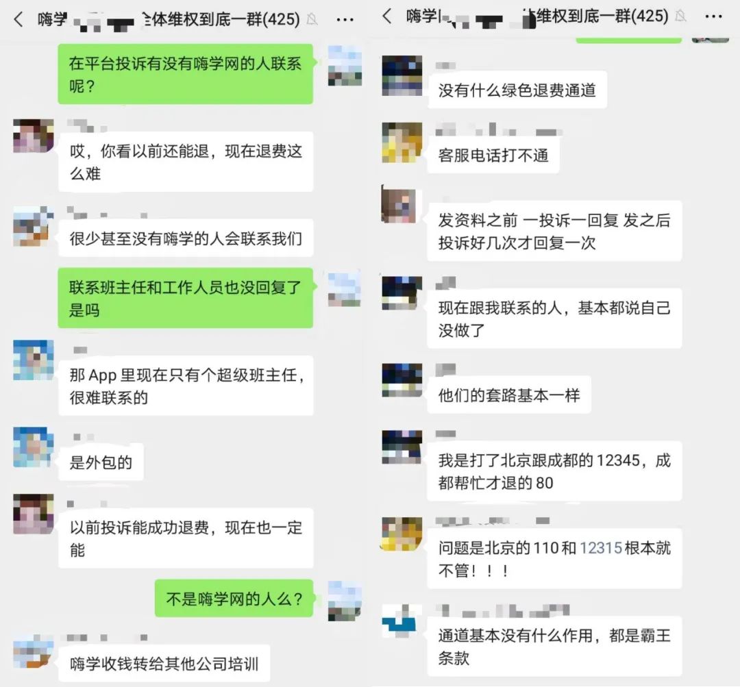 其实,在嗨学网的公众号后台专门开设有“绿色通道”,但多位维权者表示,所谓绿色退费通道,简直形同虚设——