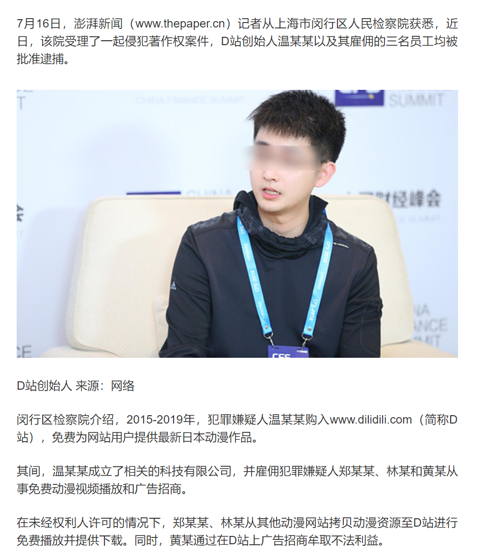 D站老板因为涉及侵权被批准逮捕这个二次元网站走到了尽头。