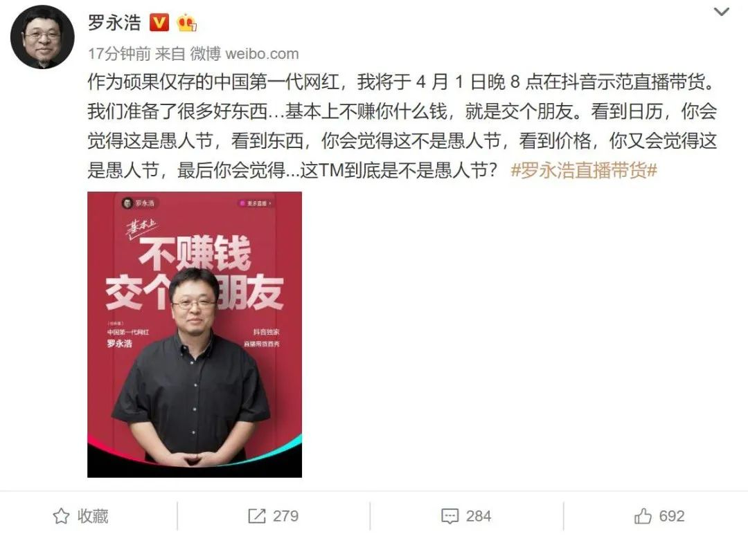 ——罗老师你不是抖音一哥吗?你咋能去淘宝直播呢!