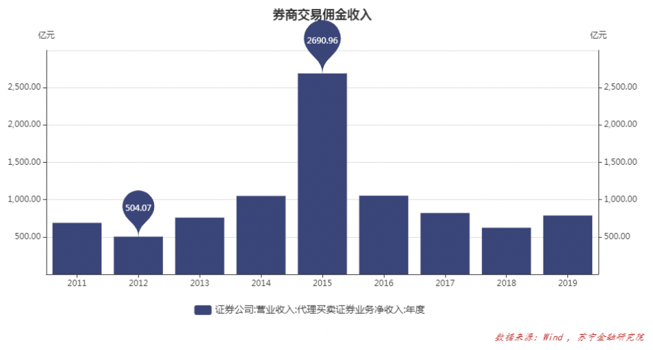 2015年埋藏了很多散户的痛苦回忆,杠杆牛转熊、指数连续跌停、基金B下折、爆仓、熔断,一桩桩、一件件,据说毁了很多中产。但券商作为卖水客,赚得盆满钵满,当年交易佣金收入2690亿元。