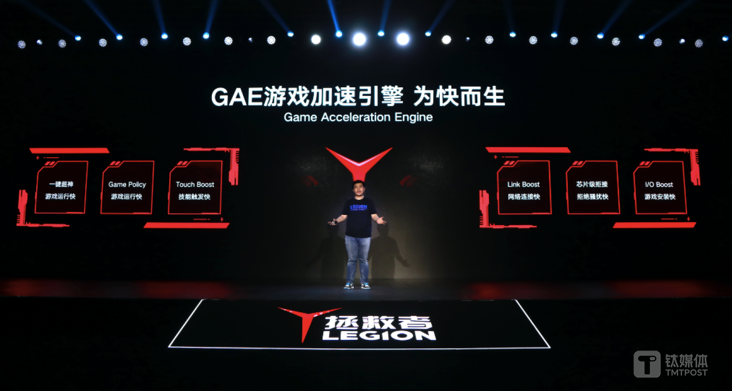 除了采用顶级硬件外,拯救者电竞手机Pro还专为游戏打造了GAE游戏加速引擎,用户只需同时长按两侧超声键,即可将其启动。