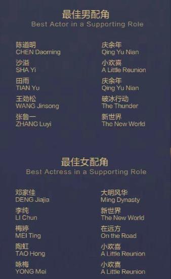 最佳男女配角上,同样是以中生代和老戏骨为主,不过和男女主提名中多是白玉兰奖的常客不同,这10人中除了张鲁一是第三次提名、沙溢是第二次提名,其他7人皆是白玉兰奖的“新人”:老戏骨如王劲松、陈道明,稍微年轻的面孔如邓家佳、李纯,均是如此。换言之,配角争夺战是今年白玉兰奖的“新鲜感”担当。