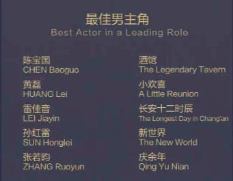最佳男主角的提名名单中,张若昀是凭借《庆余年》杀出来的黑马,除他之外,其他人同样是白玉兰奖的“老熟人”:孙红雷获奖两次,第二次提名;陈宝国得奖一次,本次也是第二次提名;雷佳音同样是第二次提名;黄磊的处境和他在老搭档海清差不多,此次是第五次提名,能否获奖也是一大看点。