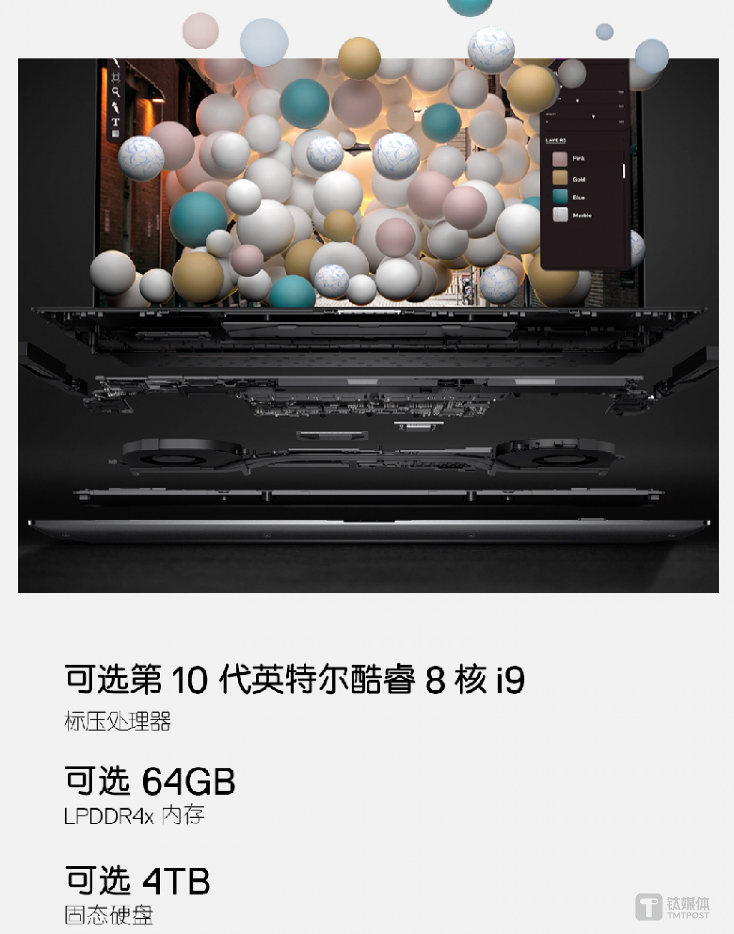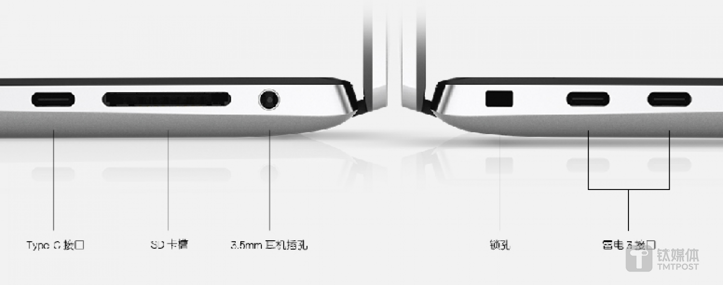 在接口方面,2个雷电3接口、1个Type-C接口、1个SD卡槽、1个3.5mm耳机插孔,能满足大部分创作的连接需求。