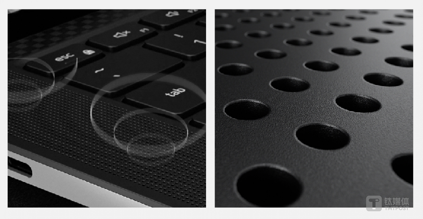 笔记本的音效,无论对于音频或视频创作者,还是音乐、影视爱好者而言,都是一个加分项。XPS15 9500重新打造了扬声器系统,共4个扬声器功率高达8W,超4500个音孔阵列,使得低音更浑厚、高音更精准,轻薄本也具备了声音艺术。