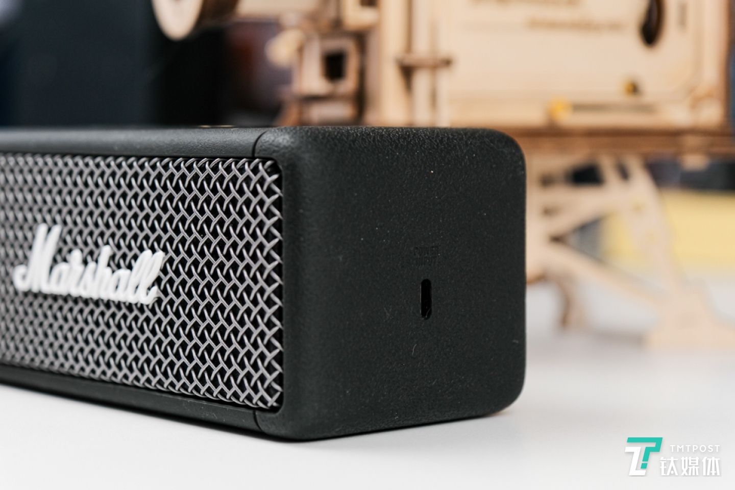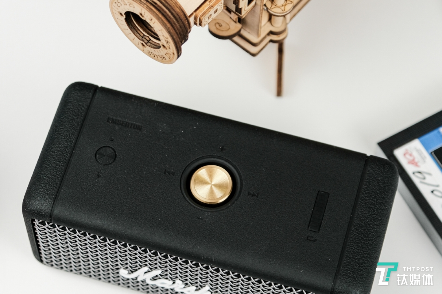 Marshall出品的音箱在音效调校上,一向有自己的风格。Emberton这款音箱也不例外,也是典型的中低频强有力的风格。不过,由于它并不像其他的Marshall音箱,没有低频和高频的物理调节键,也没有App可以进行控制。