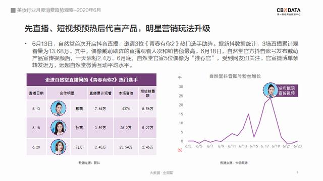这次合作也体现出美妆领域明星营销玩法的一次升级。自然堂与5位未出道偶像的合作,走的是先直播预热、后官宣代言的流程,一改以往先代言后带货的惯用套路。灵活的玩法,也使得舆论声量、带货成绩迎来多波高潮。