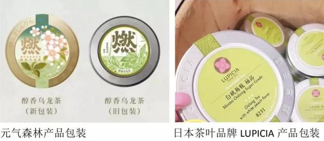 为了伪日系元气森林或许已经有些“不择手段”的意味了。据网易财经报道,元気森林在天猫旗舰店售卖的一款茶叶新品礼盒 " 燃茶 " ,因其茶叶盒外包装设计与日本著名茶叶品牌 LUPICIA 非常相似而被质疑。