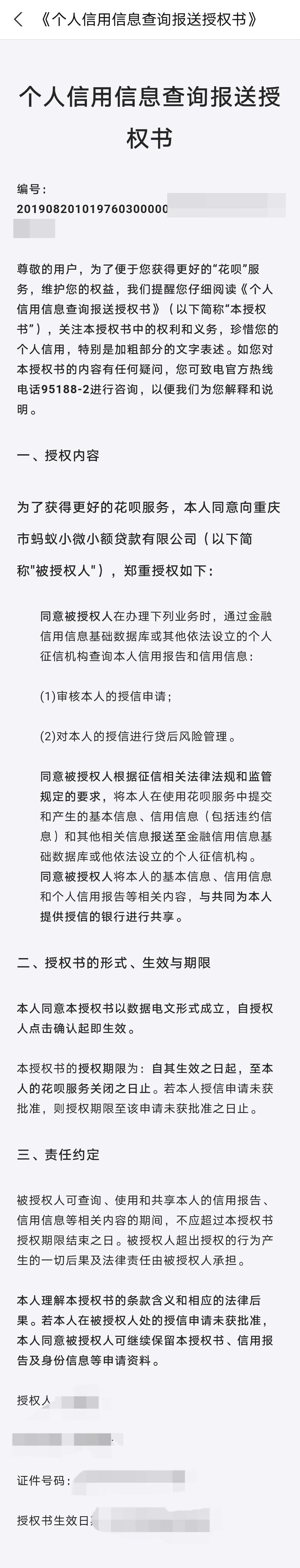 花呗《个人信用查询报送授权书》