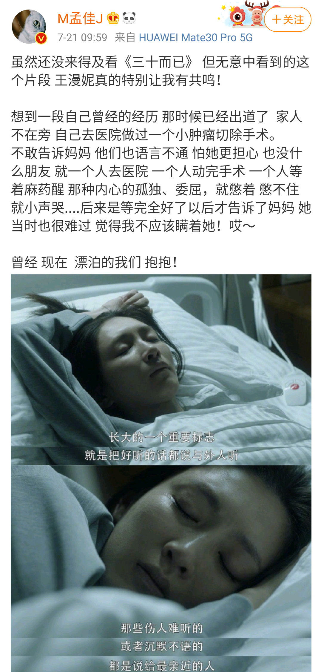 值得一提的是,因为参演《乘风破浪的姐姐》而逐渐为大众熟知的歌手孟佳当天微博发布了一张剧中王漫妮一个人生病看医生的截图,称:“王漫妮真的特别让我有共鸣!”并分享了自己早年在异国打拼的经历。明星的现身说法,也在当天为该剧增添了热度。