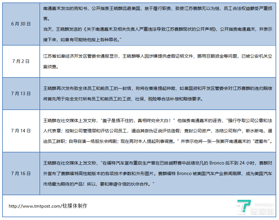 6月24日,南通嘉禾曾在向其他方股东提议“于6月28日在如皋市时代大厦召开国内股东工作会议和全体股东工作会议”。这次会议的目的是讨论和妥善解决赛麟汽车员工权益保障的相关事宜。